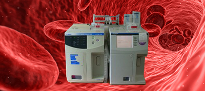 左側の機械は赤血球や白血球・血小板など貧血の程度を約1分で測定できる装置です。